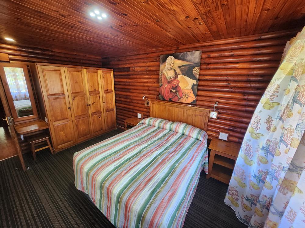 Two Bedroom Log Cabin. Main Bedroom with queen bed. Second bedroom with two bunk beds (sleeps 4 Persons). Open plan Living Room and Kitchen: air-conditioned. Stove, fridge, microwave. DSTV (selection of channels). Bathroom with bath, hand-shower and separate toilet. Braai area. Open parking. Maximum 6 Persons.